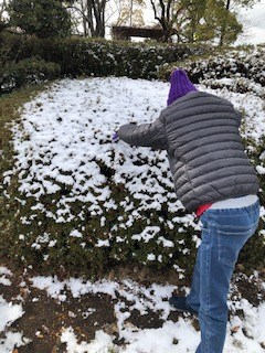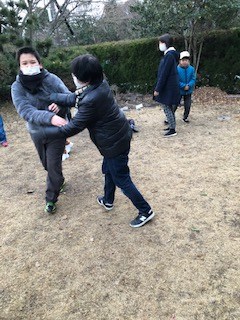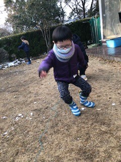 来所して足で雪を踏んでみました。雪が降った日曜日はみんなで雪が無くなる前に雪合戦をしました。