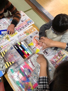 色んなお面が完成しました。節分には色んな鬼がでてきそうですね( ^)o(^ )