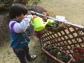 その後大好きな動物を見て3番です。岡村先生と上手にお花を植えました。