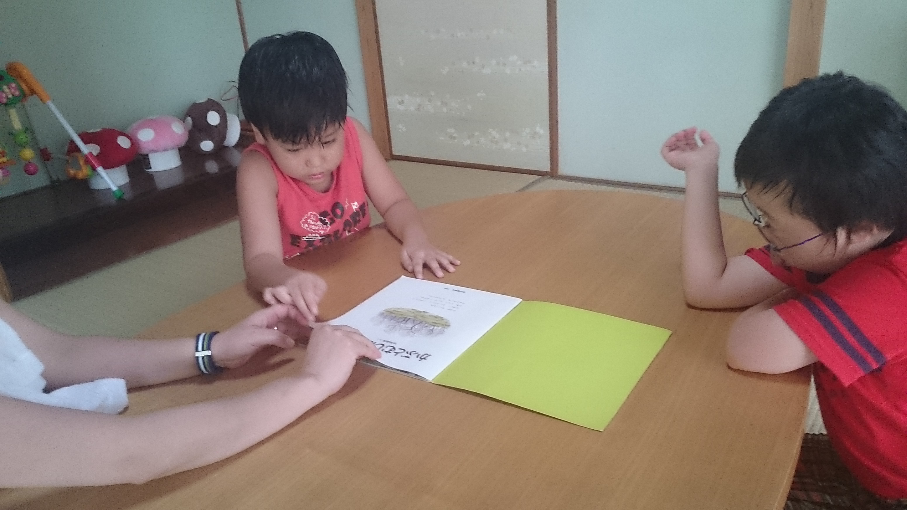 そしてクールダウンにカブトムシの本の読み聞かせをしたりマッチングして過ごしました。