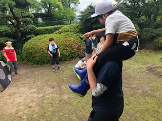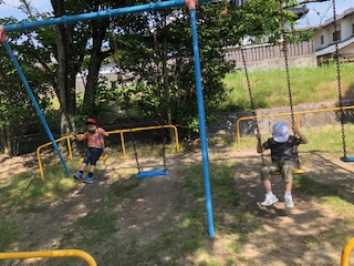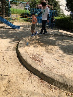 遊具では「あがれないよう~」と言っているとお兄ちゃんが支えてあげていました。カッコいい(^^♪みんな駆け回ったり新しい遊具に挑戦したり汗だくで楽しみました!(^^)!