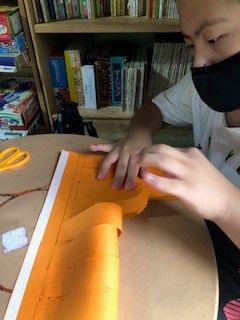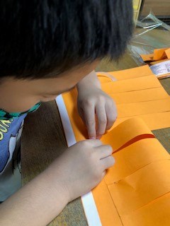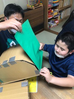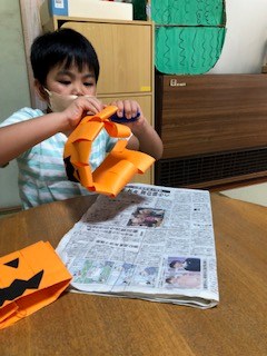 ハロウィン工作も順調です。マントやお菓子箱も作っています。
