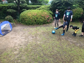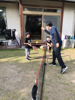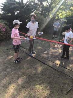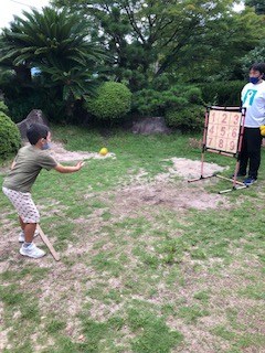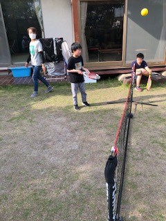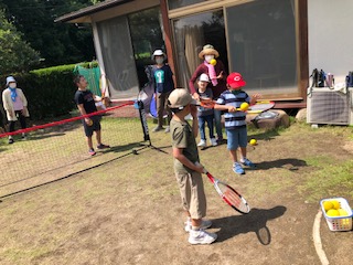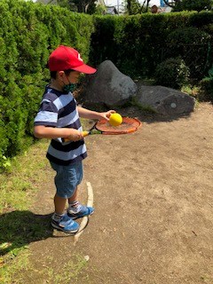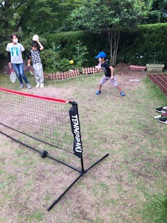 天気のいい日はテニスやボール蹴り、的あてなど球技もお庭で始めました。