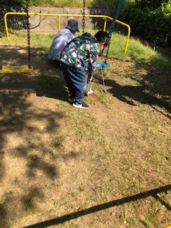 いつもの公園では葉も落ちはじめ掃除もおこなうようになりました。みんな上手くほうきが使えています。