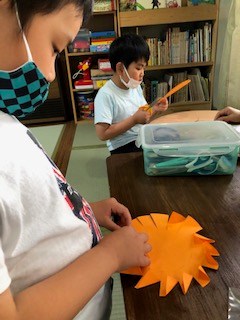 ハロウィンの準備も少しずつ始まりました。毎年恒例の冠づくりをおこなっています。