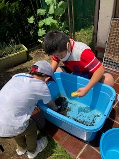 亀吉君の水替えも上手くなりました。みんな手伝わなくても自分たちで動いています。亀吉くんも大喜びかな。