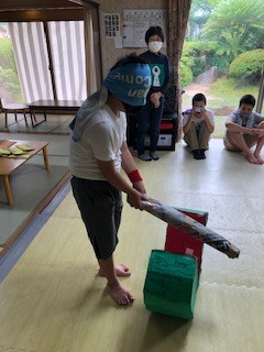 出来上がったら、さっそくスイカ割りです。