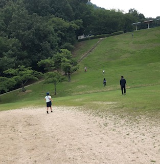 ある日は可部運動公園に行ってこの坂を上がります!みんな元気で先生ぐったり…。
