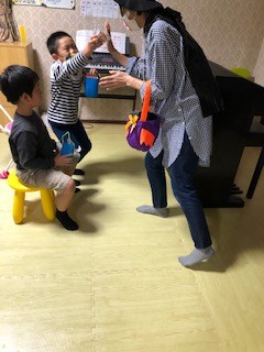 みんな名前を呼ばれ先生が音とリズムを流しマネをしていきます。みんな好きな楽器を持っています。